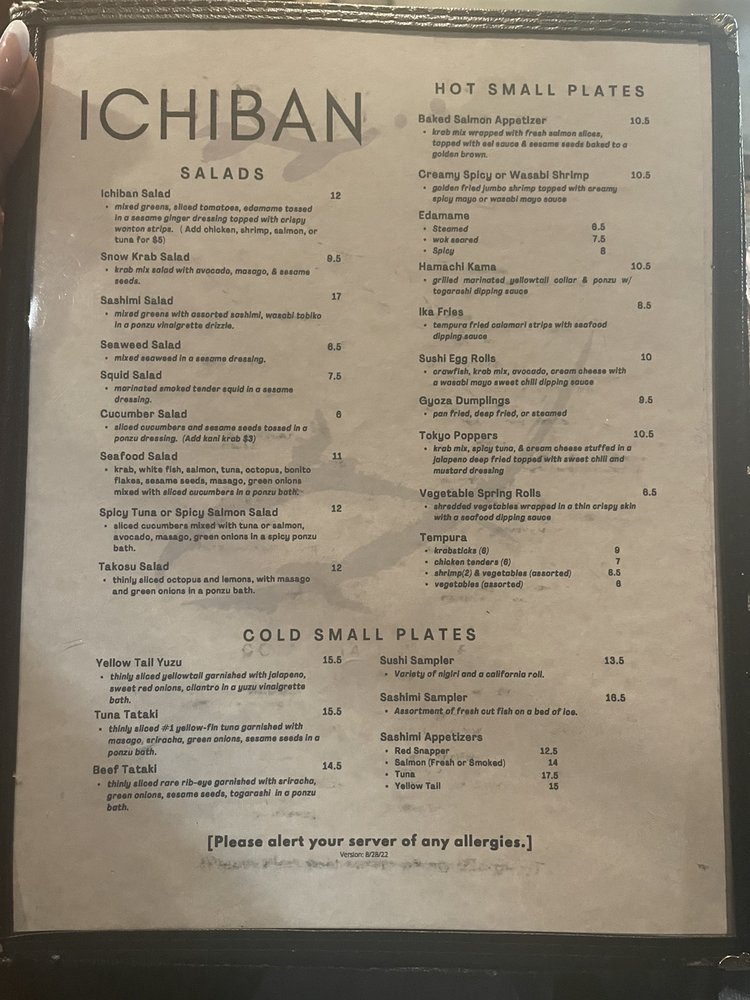 “ I went to Ichiban for the first time in a few months and it was just as good as ever! I frequently go here when I'm in the mood for dinner and it seriously never disappoints. Our waiter was friendly and attentive and made our experience great! My boyfriend and I ordered the maki sushi platter and the sushi platter which were so delicious and fresh! They give such big portions for their price and I seriously can't complain. Their prices may seem a bit higher, but the quality and the quantity are definitely worth it. We also ordered the baked salmon appetizer for the first time and it was sooo unique and a must try! Ichiban has always been one of my go-to sushi spots in BR and it will continue to be one with how great it always is! ”